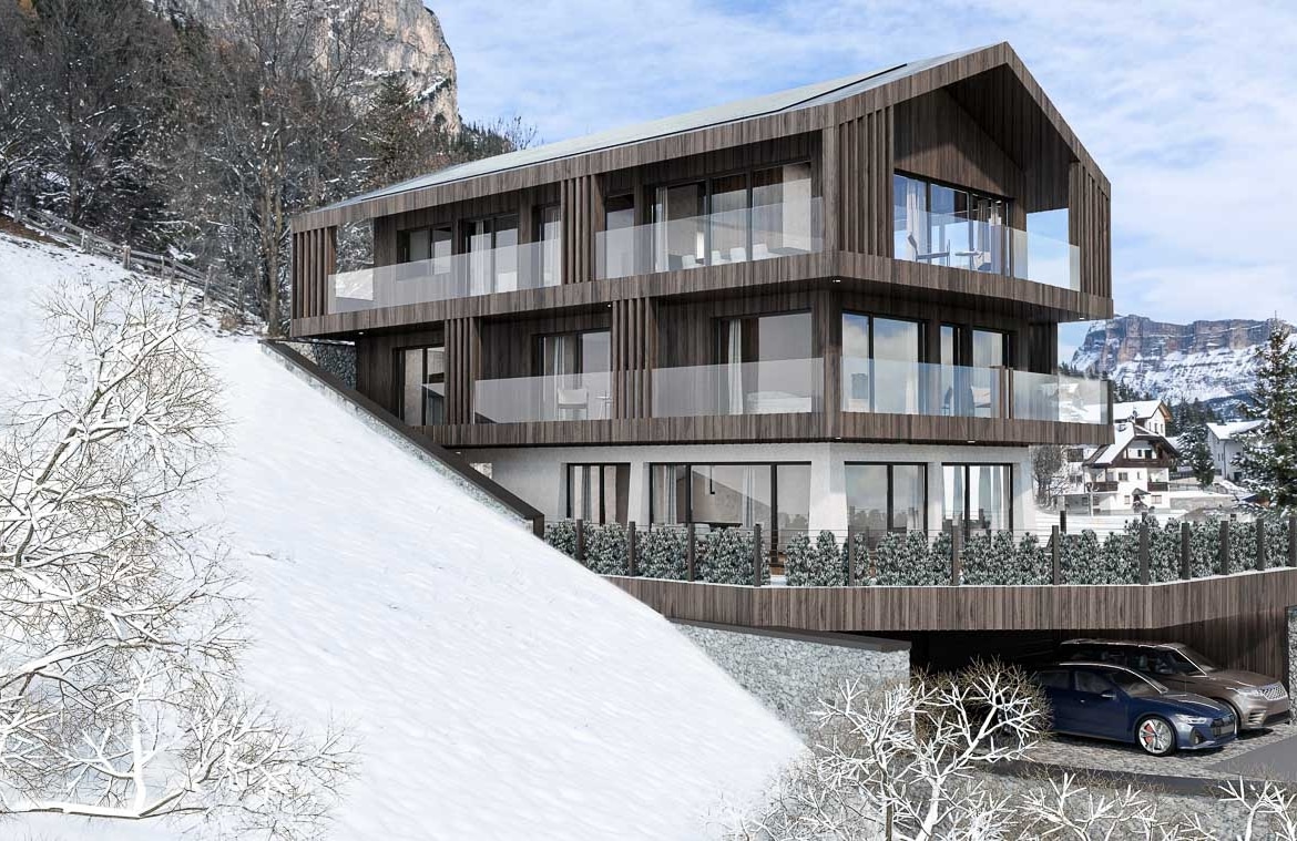Its enchanting terraces will offer future owners spectacular views of the Sella Group and the city, a perfect combination of luxury, comfort, and eco-friendliness.
