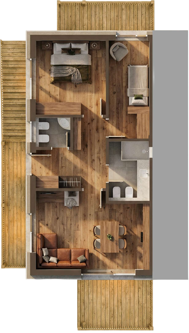 - Over 23 sqm of panoramic terraces and balconies create a seamless dialogue with the Fanes-Senes-Braies Natural Park. These outdoor "lounges" are the perfect vantage point to admire the Dolomite peaks and breathe in the crisp mountain air.