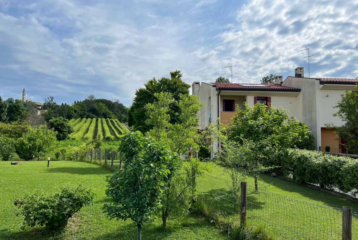 Surrounded by greenery and luxuriant vineyards, we introduce a semi-detached house with a lush exclusive garden in the village of Formeniga, in the municipality of Vittorio Veneto. The property spans over 235 sq.m., developing on three floors, and sits on a lot of 750 sq.m.