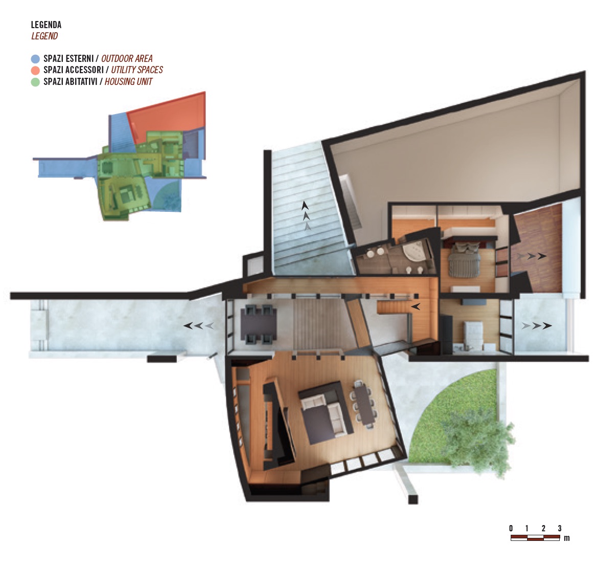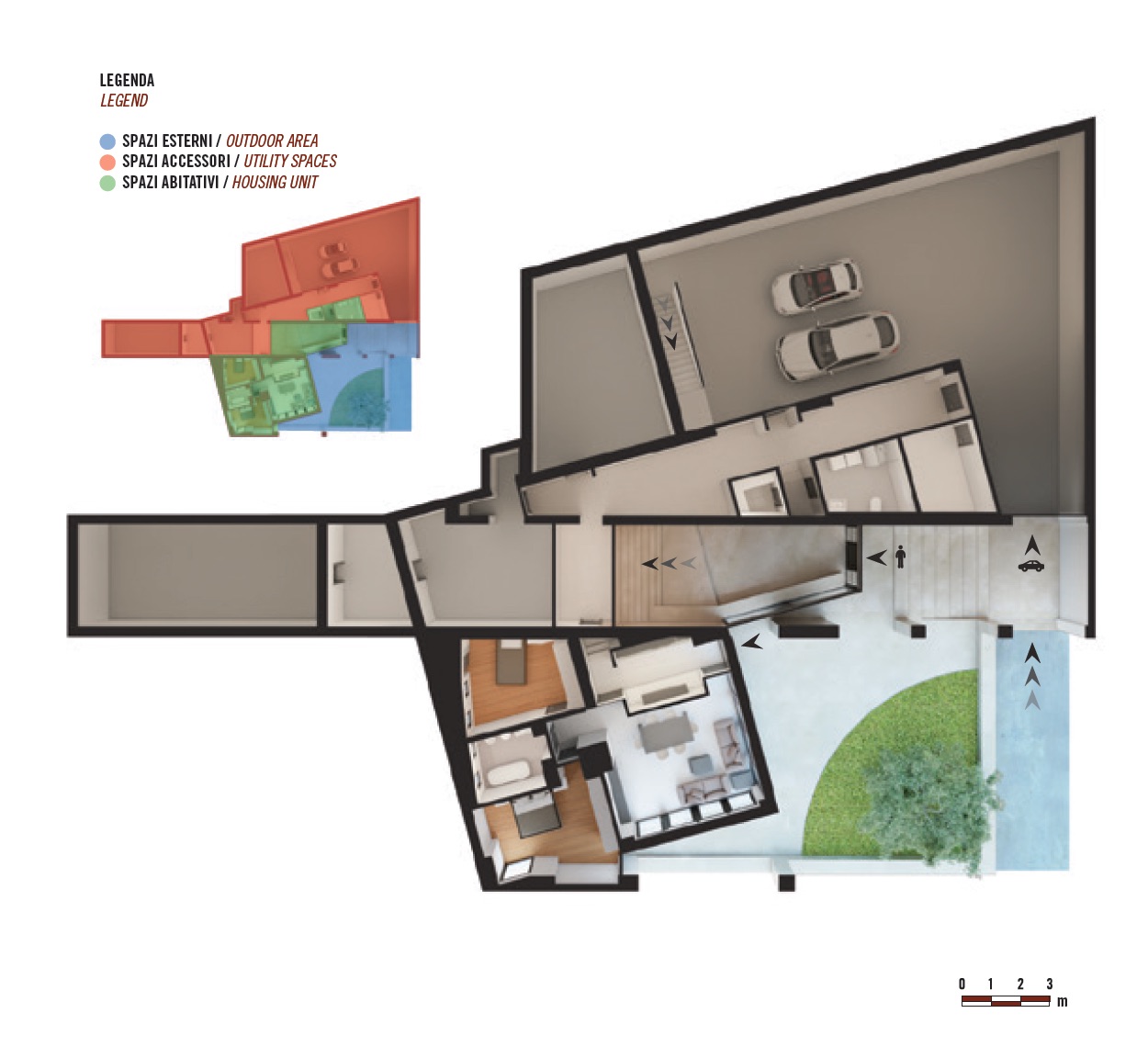 Su questo livello troviamo anche l’ingresso della seconda unità abitativa dotata di: