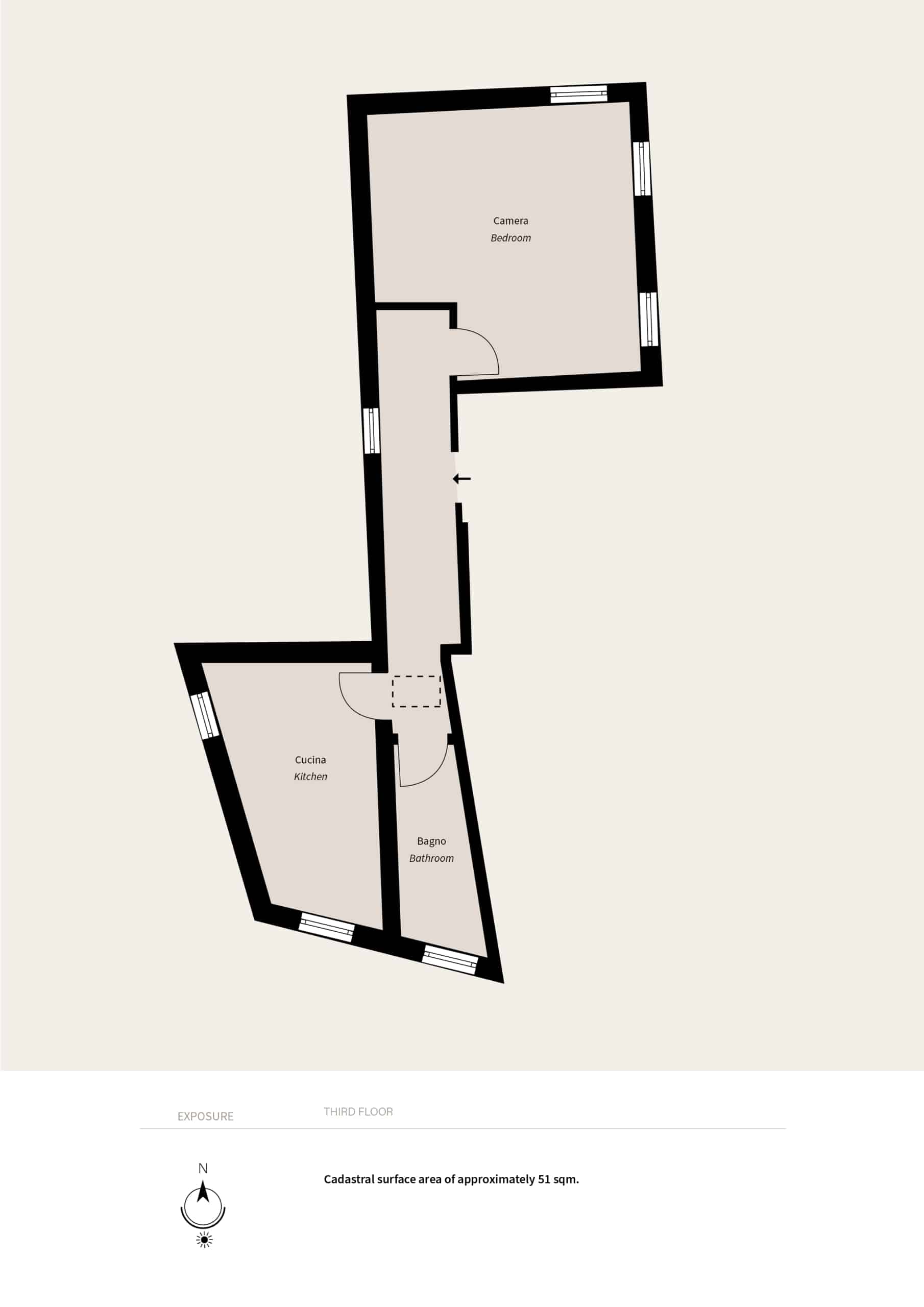 • camera da letto con esposizione d’angolo;