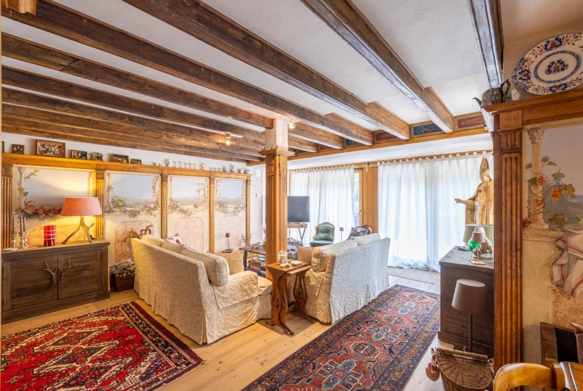L’arredamento su misura, insieme agli affreschi presenti, conferiscono all’appartamento un tocco elegante e accogliente.