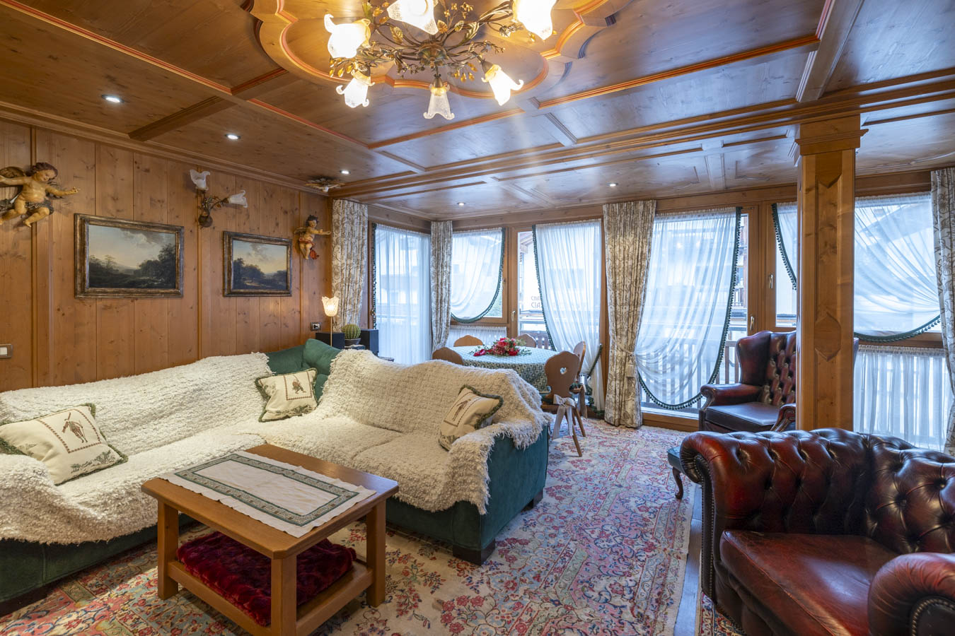 Nel cuore pulsante della zona pedonale di San Cassiano, proponiamo un esclusivo appartamento trilocale situato al primo piano di un intimo condominio di sole 9 unità (completamente ristrutturato nel 2013), a pochi passi dagli impianti di risalita del Piz Sorega.